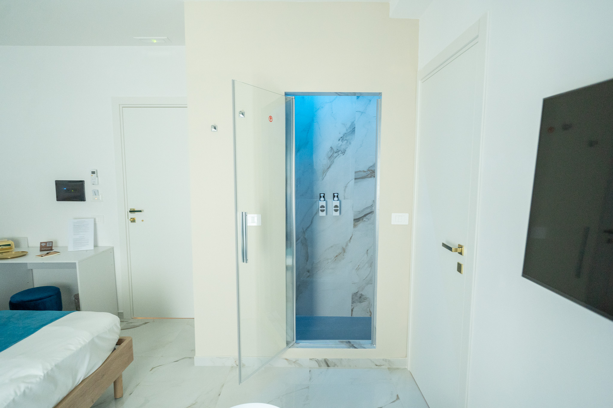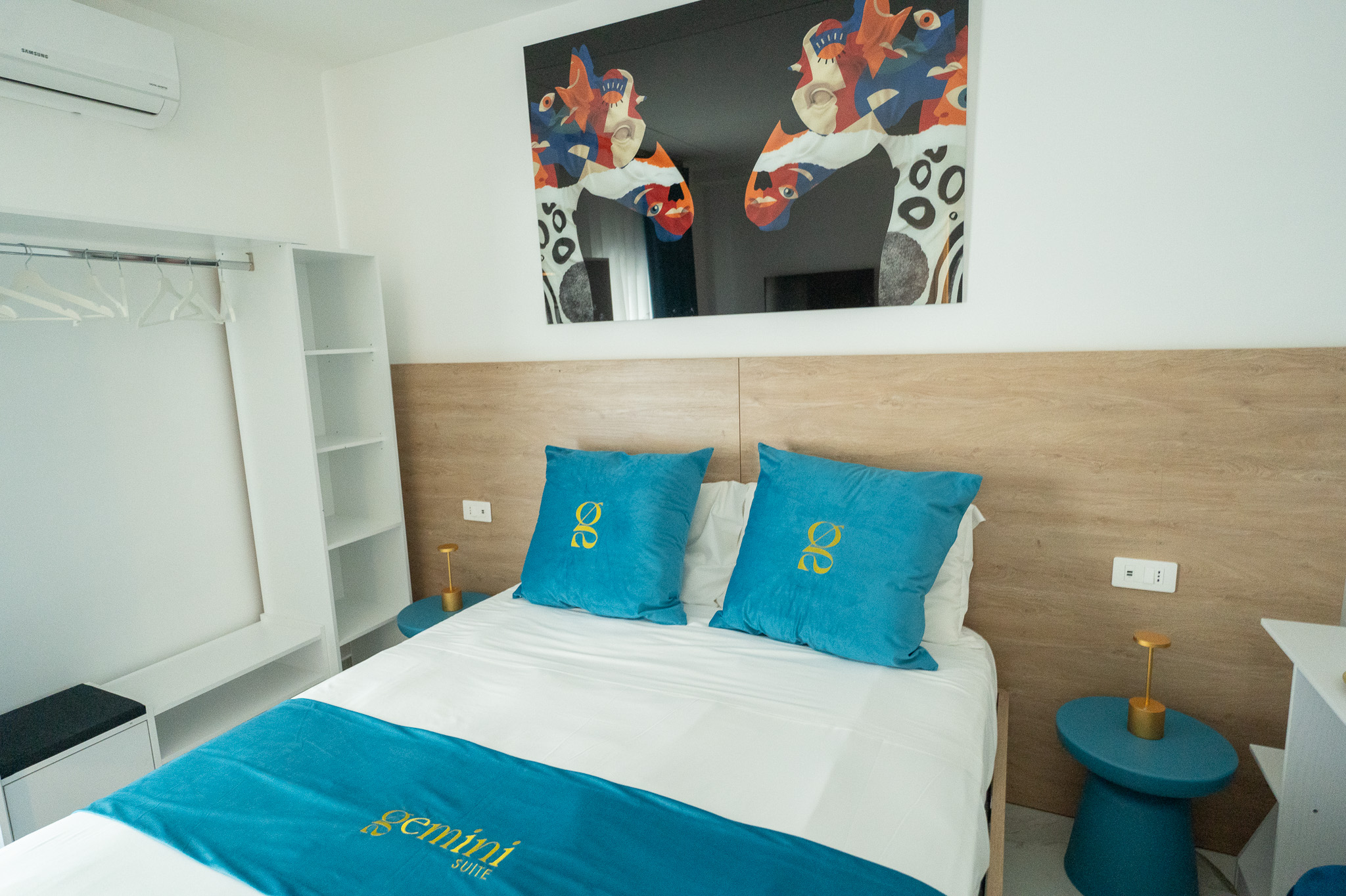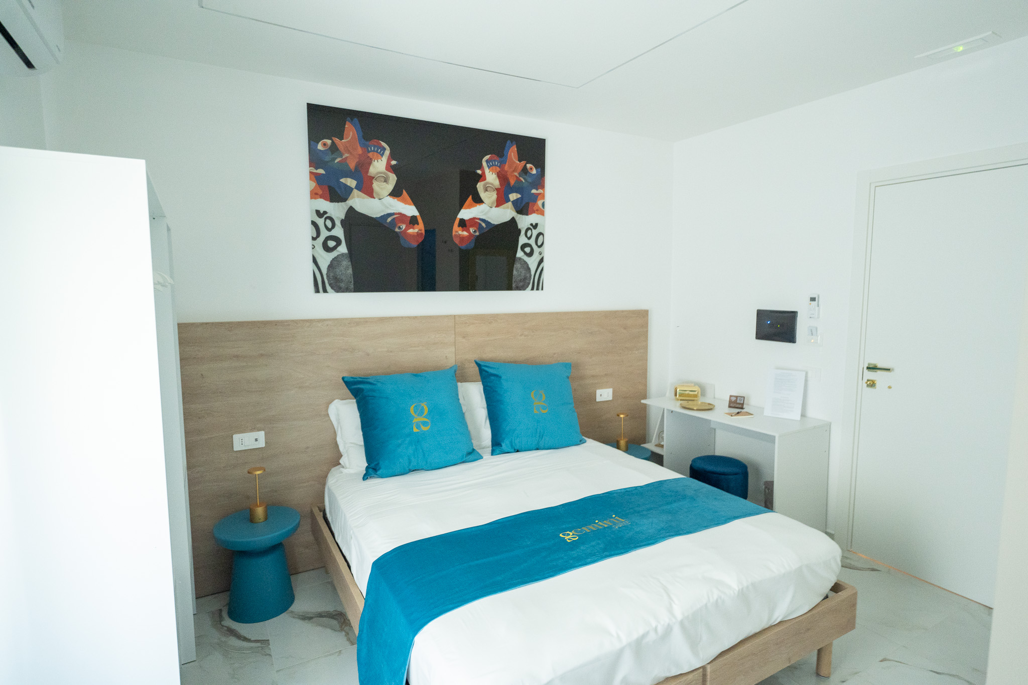 Benvenuti nella camera Castore suite, un’oasi di raffinatezza e serenità. Arredata con cuscini turchesi che conferiscono un tocco di colore al design moderno, questa stanza offre un ambiente elegante e rilassante, ideale per un soggiorno confortevole.